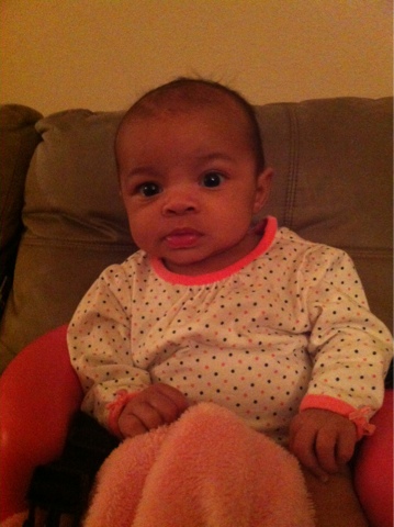 I must say Sloane did so great while there. I fed her when we first got there and then she was a happy baby watching everyone hooking me up to all the machines. Of course everyone commented about how adorable she was and what a good baby she was. She fussed for just a little bit when she got tired but we put her in her car seat, closed to cover and rocked her till she fell asleep. The highlight of the ER was seeing her little feet poking out from under the car seat cover.